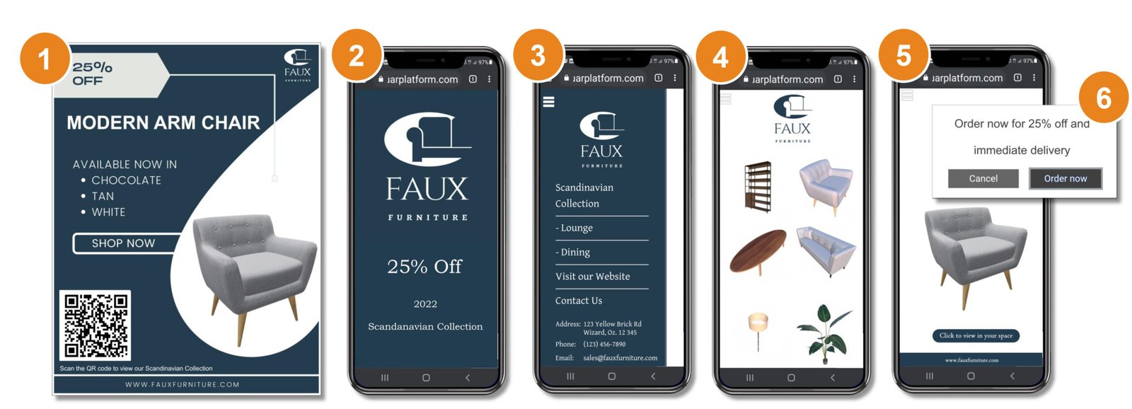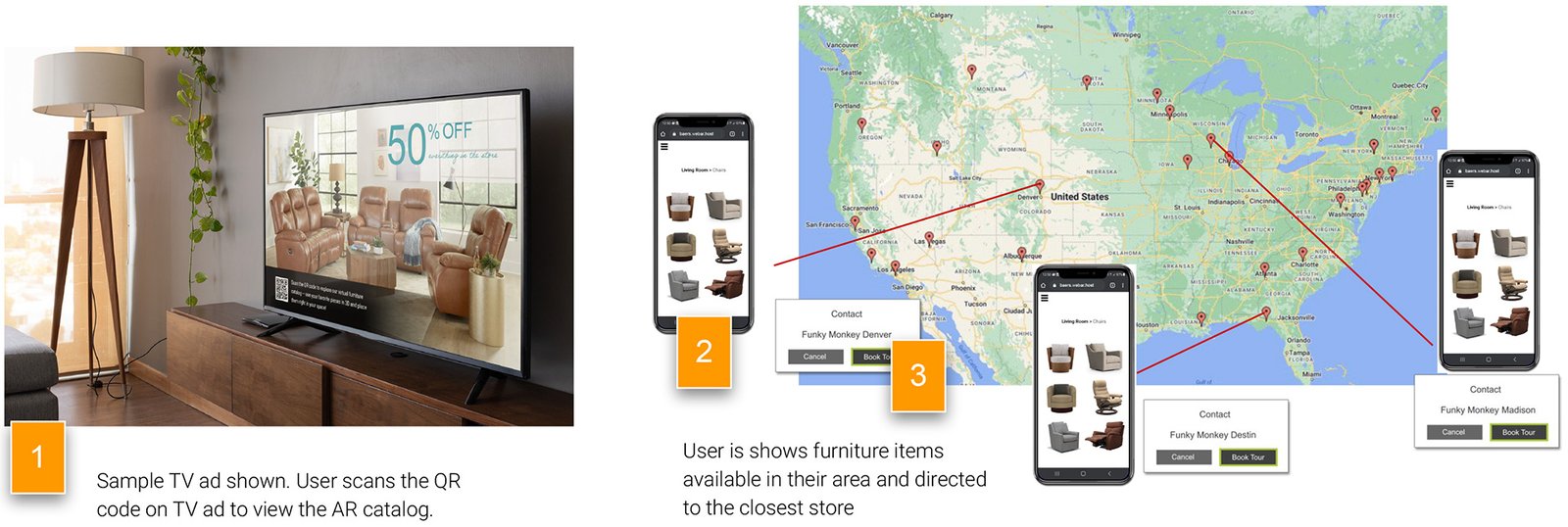 Geo-specific content enables users to browse a product catalog featuring furniture items
